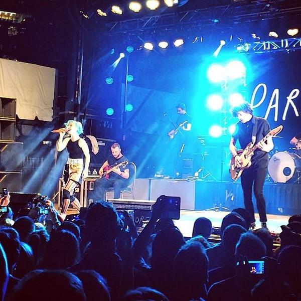 Apesar de se encontrar com dores e ainda sem se puder mexer muito como ele diz no twitter, ontem no concerto dos Paramore ele tocou baixo sentado numa cadeira.