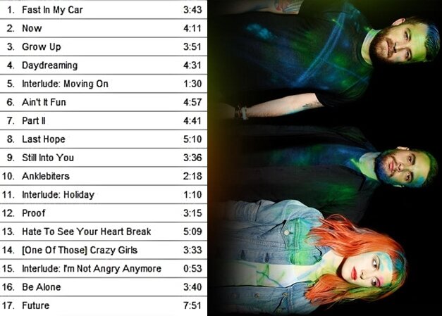 Duração de todas as músicas do álbum Paramore.